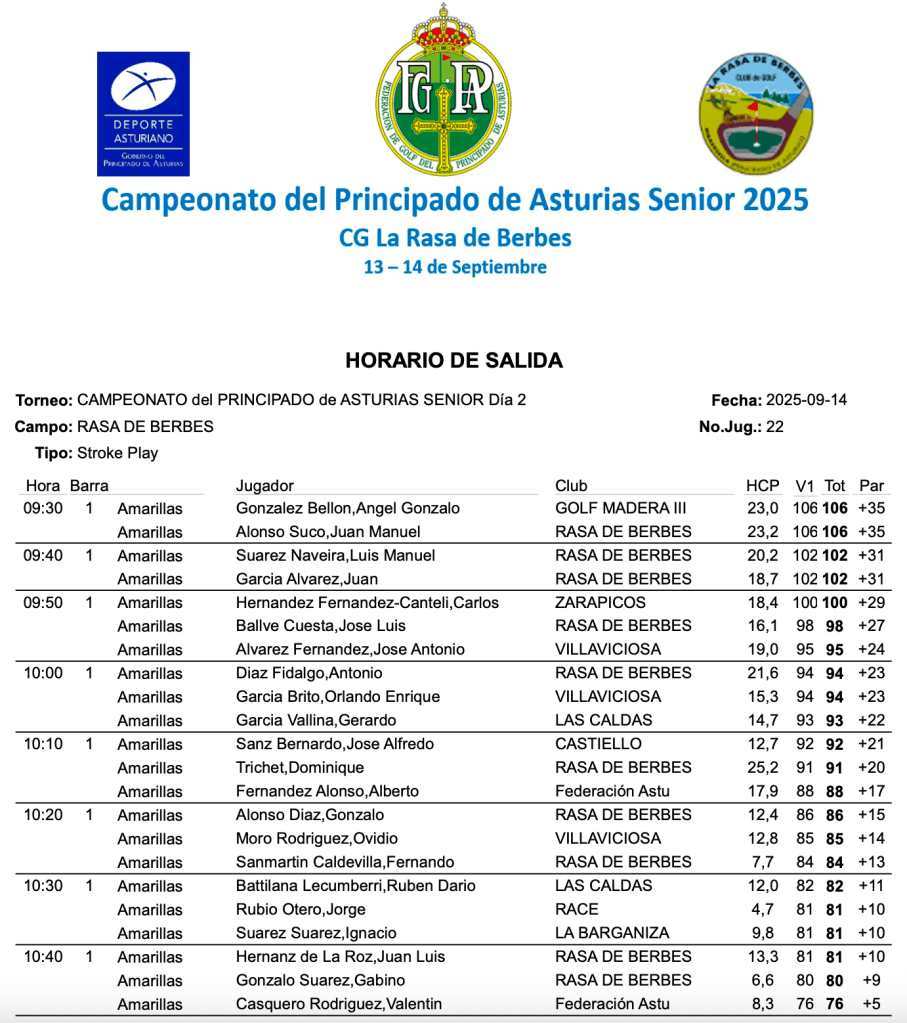 Salidas 2ª jornada campeonato del Principado de asturias senior 2025 / Golf La Rasa de Berbes por Golf por Asturias en 14 septiembre, 2025 Compártelo: Haz clic para compartir en X (Se abre en una ventana nueva) X Haz clic para compartir en Facebook (Se abre en una ventana nueva) Facebook Me gusta Cargando...