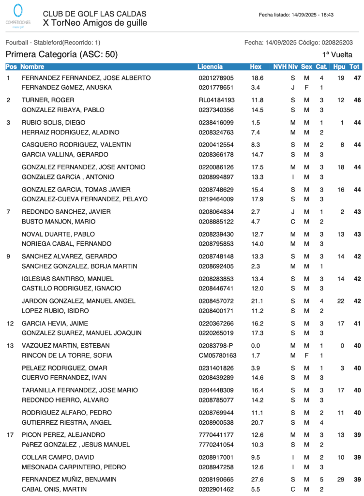 RESULTADOS X TORNEO » AMIGOS DE GUILLE » / C.M. GOLF LAS CALDAS por Golf por Asturias en 16 septiembre, 2025 CUADRO DE GANADORES foto cortesia Pelayo Fdez-Cueva CLASIFICACION 1ª CATEGORIA CLASIFICACION 2ª CATEGORIA CLASIFICACION 3ª CATEGORIA foto cortesia Pelayo Glez-CuevaGRACIAS PELAYO POR LAS FOTOS Compártelo: Haz clic para compartir en X (Se abre en una ventana nueva) X Haz clic para compartir en Facebook (Se abre en una ventana nueva) Facebook Me gusta Cargando...