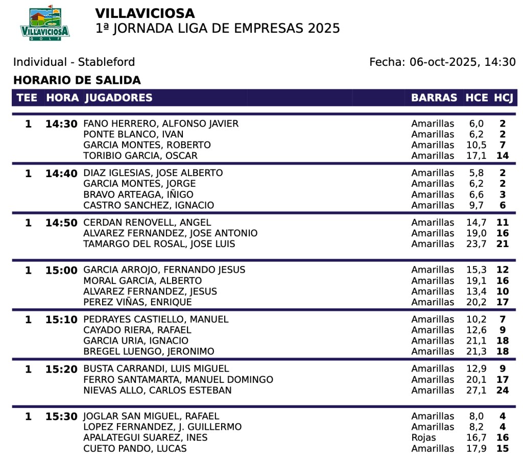 Salidas viernes «Liga Empresas 2025» / Villaviciosa Golf por Golf por Asturias en 3 octubre, 2025 Arranca hoy la nueva edición de la Liga de Empresas 2025, os dejamos las salidas de viernes Compártelo: Haz clic para compartir en X (Se abre en una ventana nueva) X Haz clic para compartir en Facebook (Se abre en una ventana nueva) Facebook Me gusta Cargando...