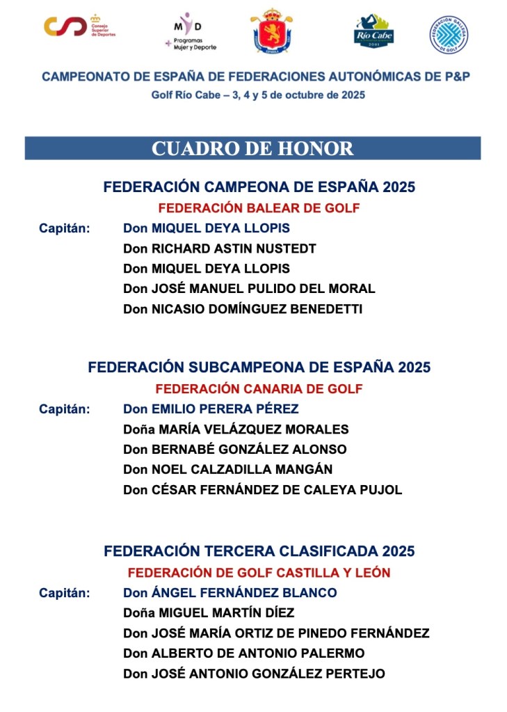 El equipo de la federación Balear es la ganadora del Inter FF AA 2025, prueba realizada en el recorrido gallego de Sociedad Rio Cabe.