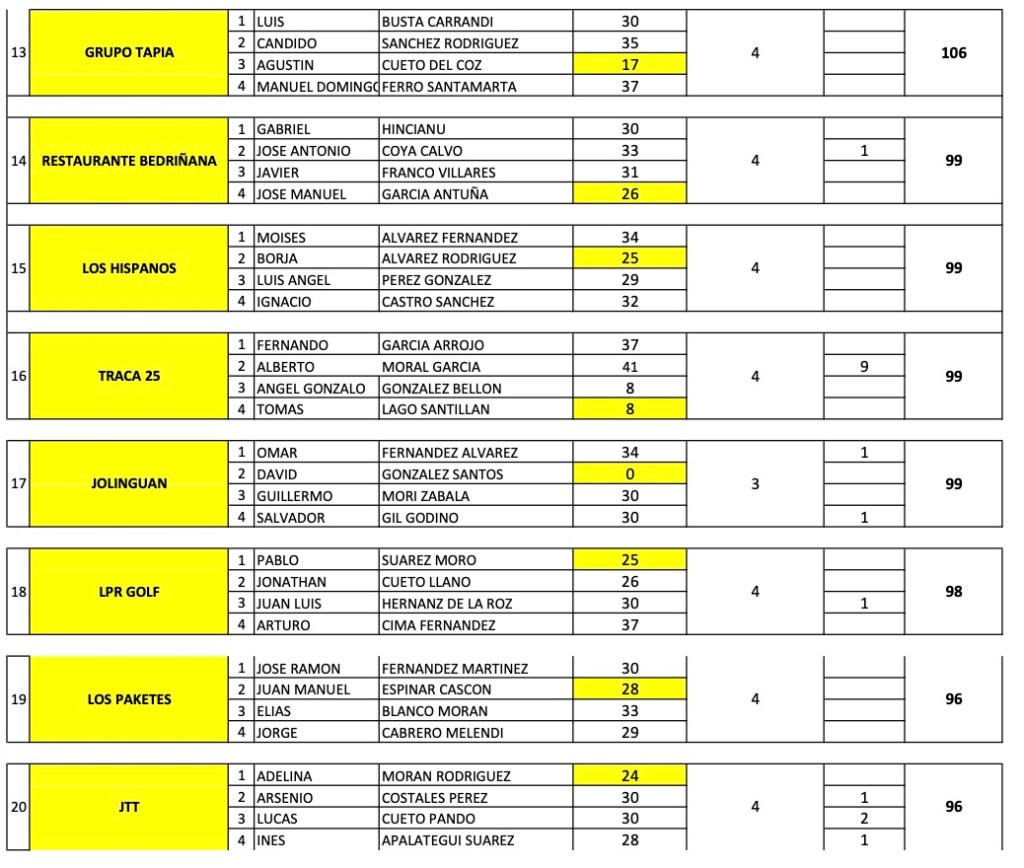 Arranco el pasado fin de semana una nueva edición de la Liga de Empresas en Villaviciosa Golf, después de la primera jornada el equipo líder es ELECTRO ARBENTI ( Jorge Onis, Jose Manuel Martinez, Celestino Santiago y Pedro Milena)