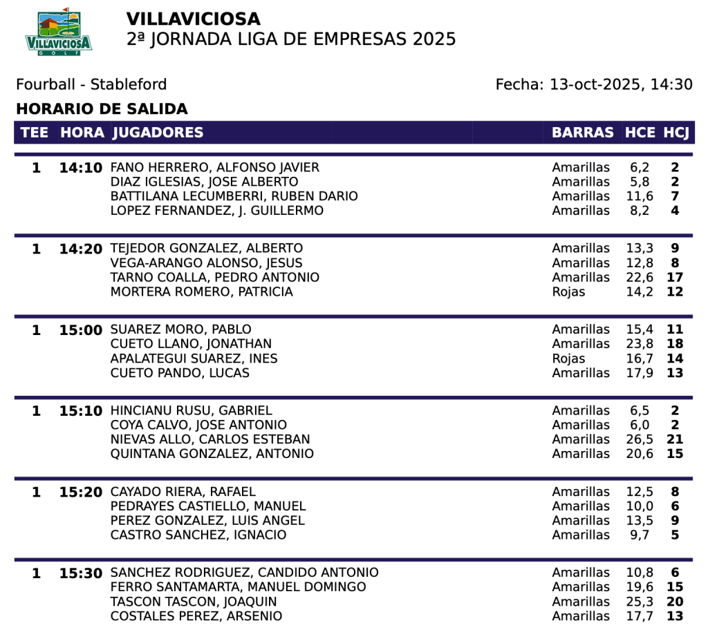 SALIDAS VIERNES 2ª JORNADA LIGA EMPRESAS 2025 / VILLAVICIOSA GOLF por Golf por Asturias en 10 octubre, 2025 Compártelo: Compartir en X (Se abre en una ventana nueva) X Comparte en Facebook (Se abre en una ventana nueva) Facebook Me gusta Cargando...