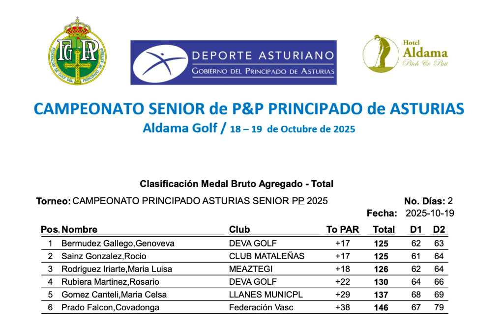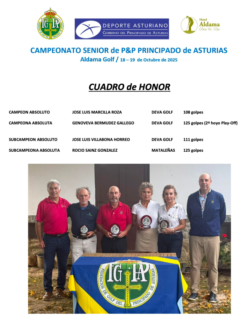 Genoveva Bermudez y Jose Luis Marcilla gana el Campeonato del P. de Asturias Senior de P&P 2025 / Aldama Golf