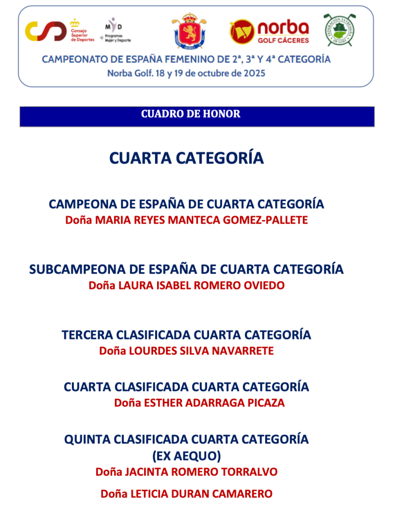 Julia Izquierdo Navarro con su tercer puesto en 2ª categoría, fue nuestra mejor jugadora clasificada en el campeonato de España femenino 2025, prueba realizada en el recorrido cacereño de Norba Golf