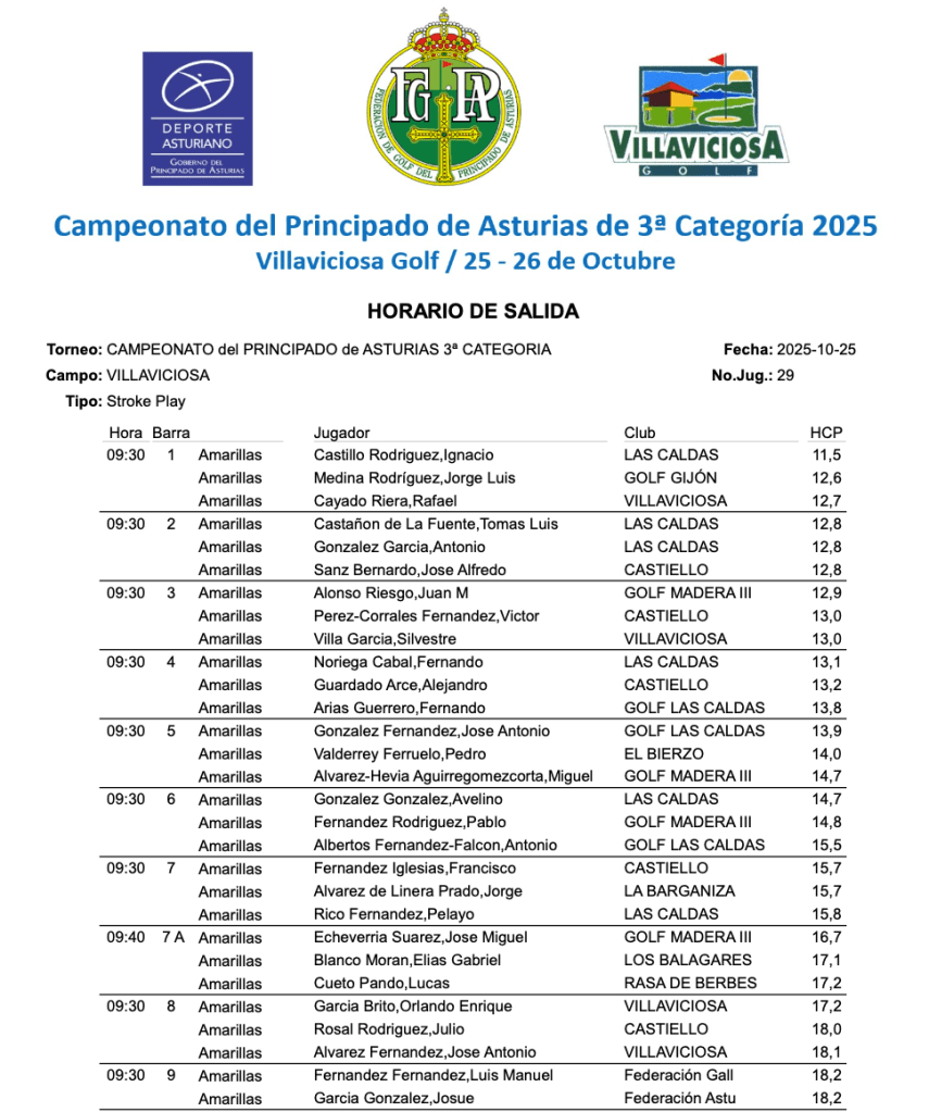 HORARIOS SABADO CAMPEONATO P. DE ASTURIAS 3ª CATEGORIA / VILLAVICIOSA GOLF por Golf por Asturias en 24 octubre, 2025 Compártelo: Haz clic para compartir en X (Se abre en una ventana nueva) X Haz clic para compartir en Facebook (Se abre en una ventana nueva) Facebook Me gusta Cargando...
