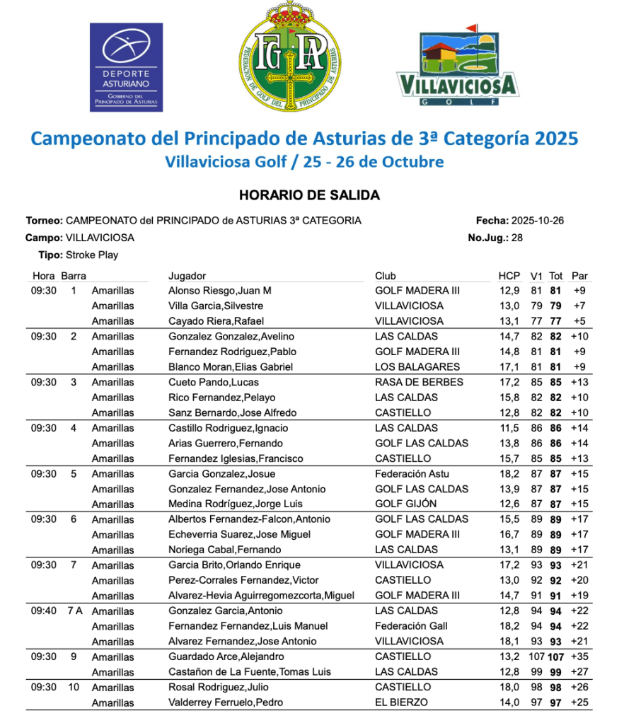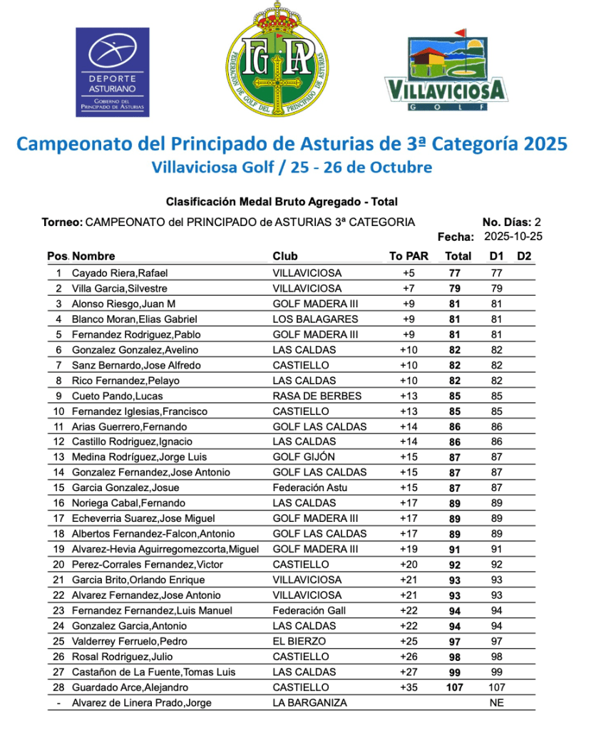 RESULTADOS 1ª JORNADA CAMPEONATO del PRINCIPADO de ASTURIAS 3ª CATEGORIA 2025 / VILLAVICIOSA GOLF