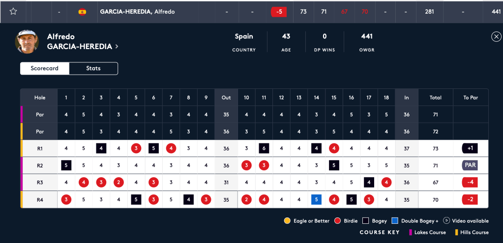 El profesional asturiano Alfredo Garcia-Heredia se queda a tan solo un golpe de superar el corte de Qualifying School Final Stage DP World Tour 2025, prueba que se esta realizando en el recorrido de Infinitum Golf.