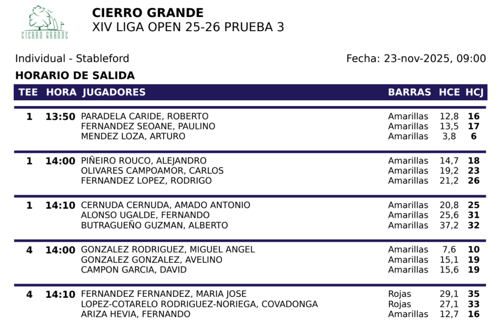 SALIDAS VIERNES XIV LIGA OPEN 25/26 JORNADA 3ª por Golf por Asturias en 21 noviembre, 2025 Compártelo: Haz clic para compartir en X (Se abre en una ventana nueva) X Haz clic para compartir en Facebook (Se abre en una ventana nueva) Facebook Me gusta Cargando...