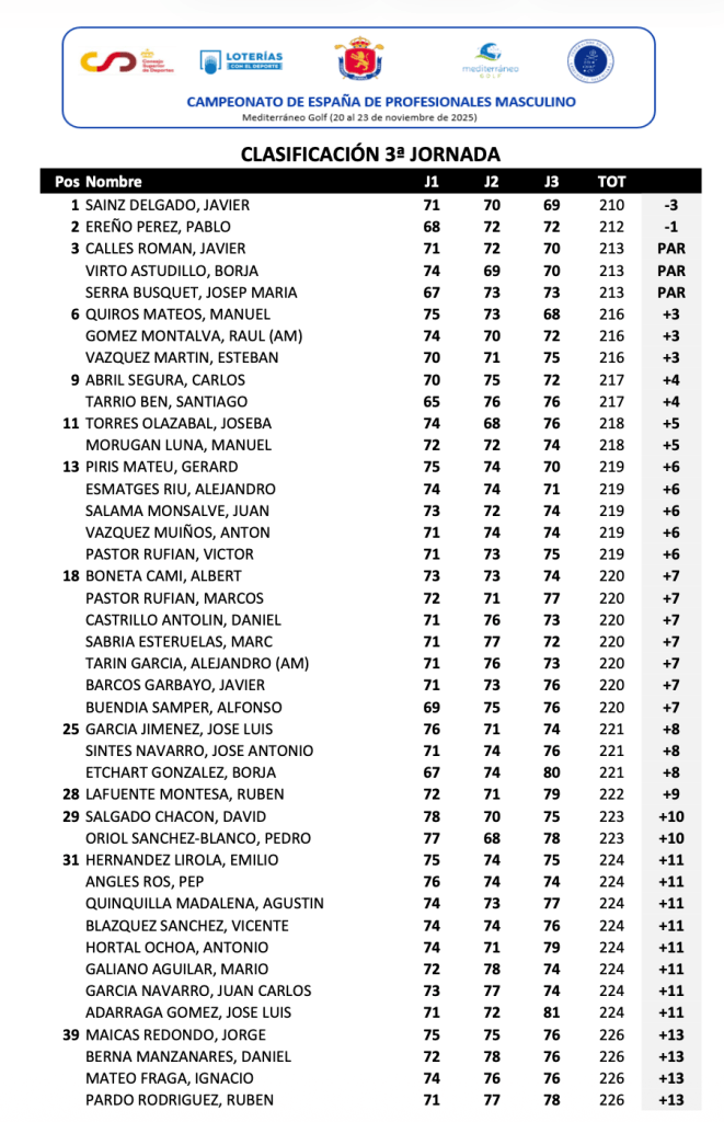 Esteban Vazquez firma 75 golpes en la tercera jornada Cio. España Profesionales 2025