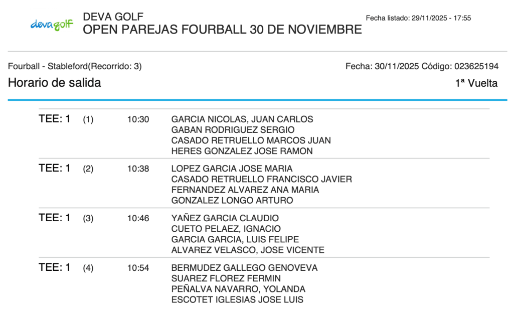 Horarios salidas Open Parejas Fourball 30 Noviembre 2025 / Deva Golf por Golf por Asturias en 30 noviembre, 2025 Compártelo: Haz clic para compartir en X (Se abre en una ventana nueva) X Haz clic para compartir en Facebook (Se abre en una ventana nueva) Facebook Me gusta Cargando...