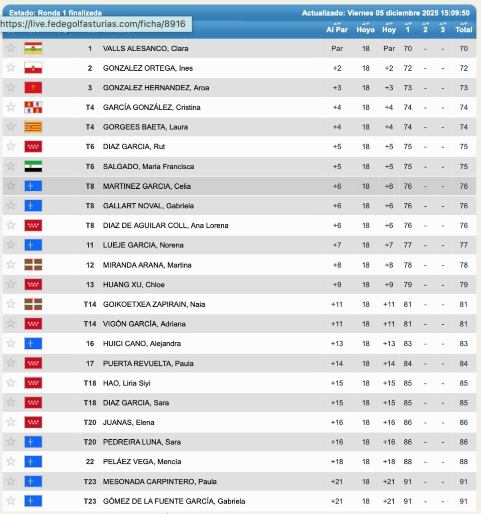 La riojana Clara Valls Alesanco con una tarjeta de PAR del campo, es la primera líder de la VIII edición del Memorial Celia Barquín Arozamena-Copa Principado 2025