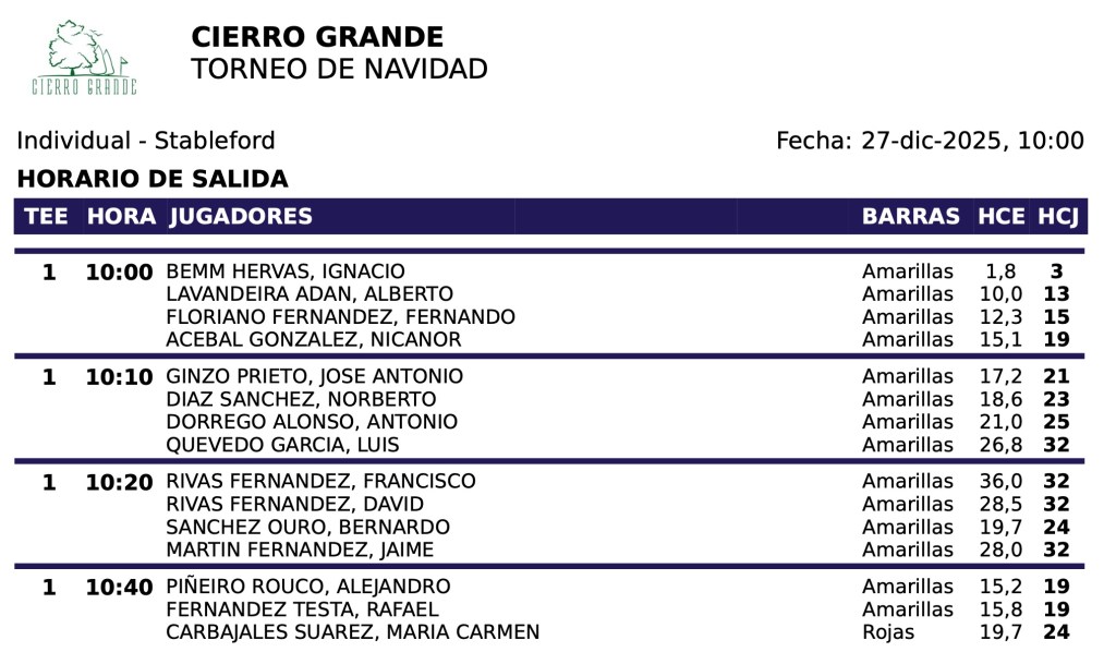 SALIDAS SABADO TORNEO NAVIDAD 2025 / CIERRO GRANDE GOLF por Golf por Asturias en 27 diciembre, 2025 Screenshot Compártelo: Haz clic para compartir en X (Se abre en una ventana nueva) X Haz clic para compartir en Facebook (Se abre en una ventana nueva) Facebook Me gusta Cargando...