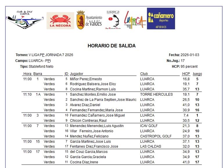 HORARIOS SABADO 7ª JORNADA LIGUILLA / LUARCA GOLF por Golf por Asturias en 2 enero, 2026 Compártelo: Haz clic para compartir en X (Se abre en una ventana nueva) X Haz clic para compartir en Facebook (Se abre en una ventana nueva) Facebook Me gusta Cargando...