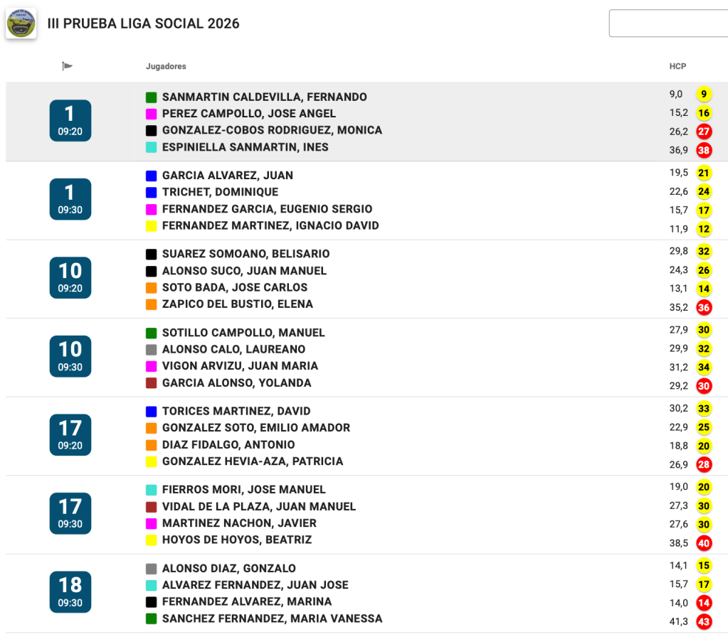 HORARIOS SALIDAS III JORNADA LIGA SOCIAL / GOLF LA RASA DE BERBES por Golf por Asturias en 23 enero, 2026 Compártelo: Compartir en X (Se abre en una ventana nueva) X Comparte en Facebook (Se abre en una ventana nueva) Facebook Me gusta Cargando...