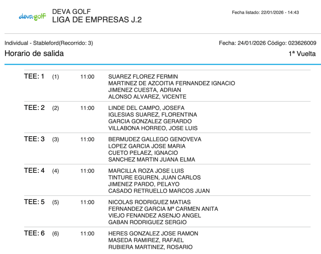 SALIDAS 2ª JORNADA LIGA EMPRESAS 2026 / DEVA GOLF por Golf por Asturias en 24 enero, 2026 Compártelo: Compartir en X (Se abre en una ventana nueva) X Comparte en Facebook (Se abre en una ventana nueva) Facebook Me gusta Cargando...