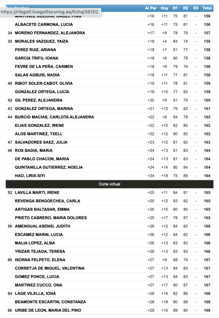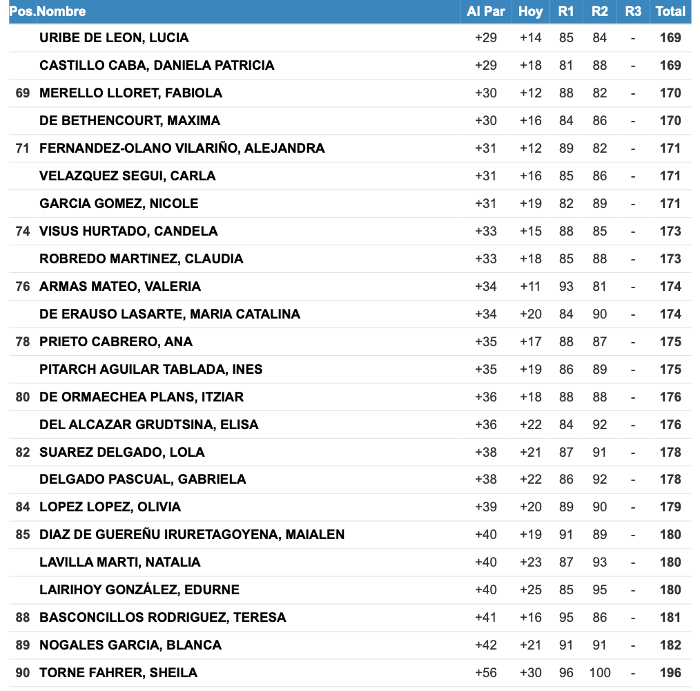 Gabriela Gallart ademas de superar el corte, con sus 145 golpes en total, se posiciona tercera a tan solo un golpe le separa de las primeras clasificadas.