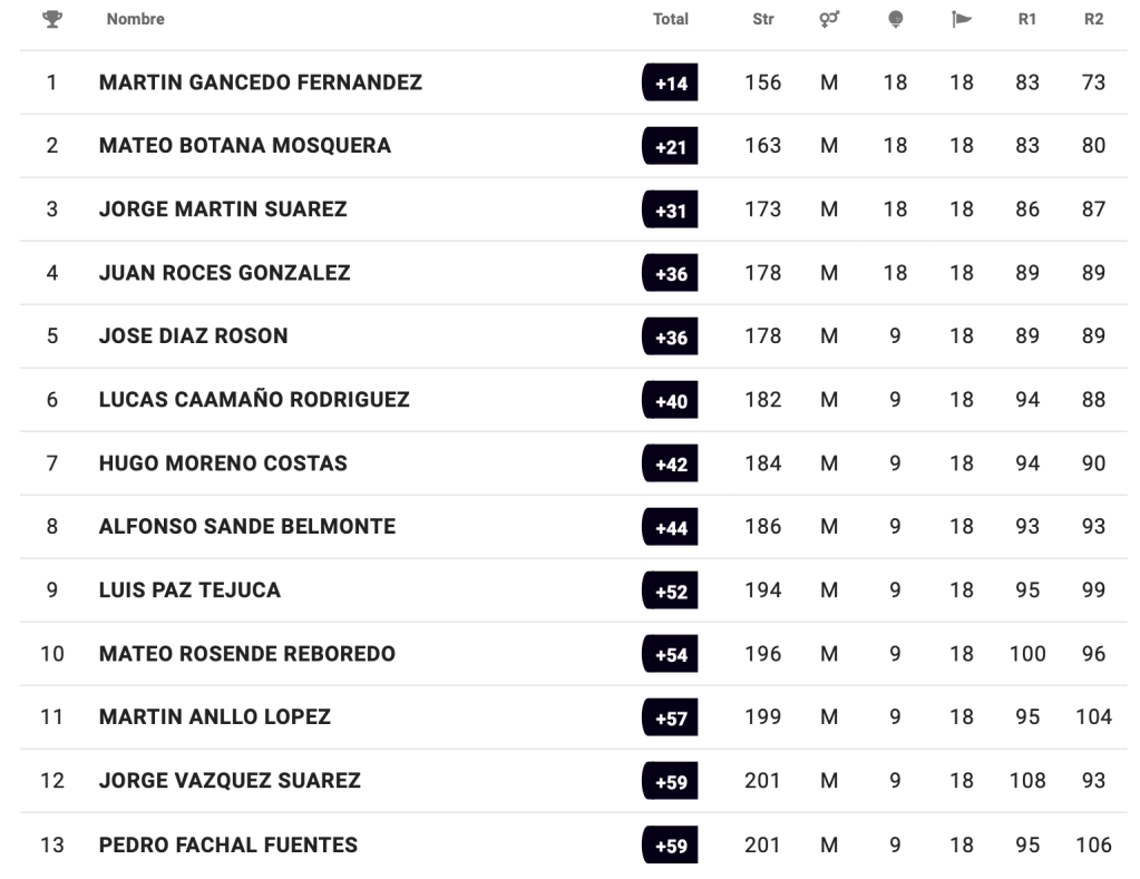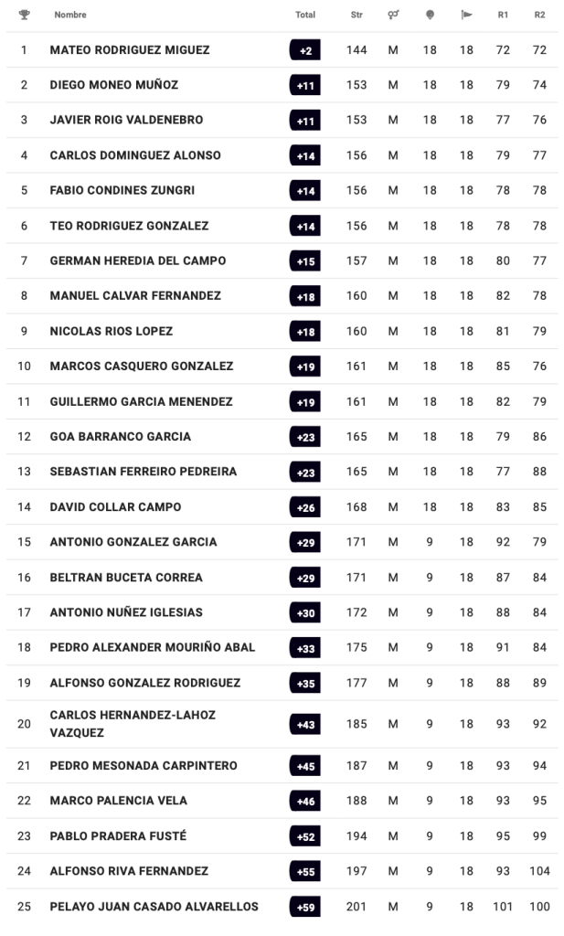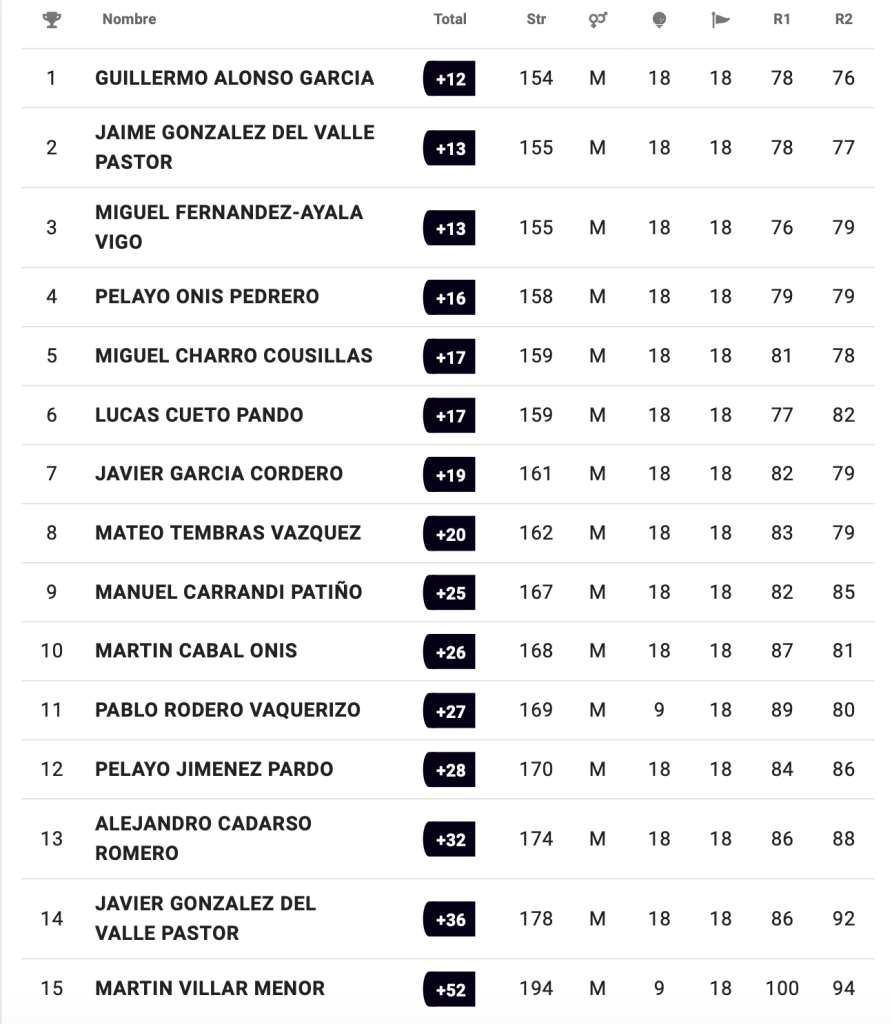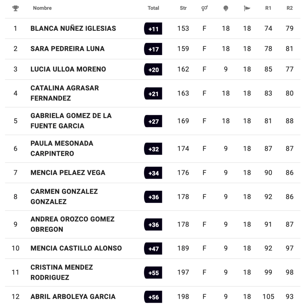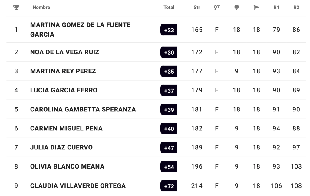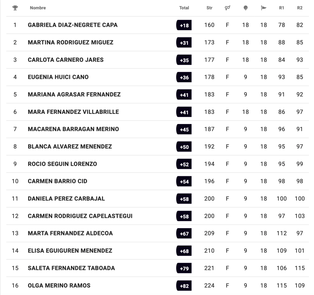 Guillermo Alonso García (CG Las Caldas) en categoría cadete masculina con 154 golpes, Martina Gómez de la Fuente García (RCG La Barganiza) en categoría infantil femenina con 165 y Gabriela Díaz-Negrete Capa (RCG Castiello) en categoría alevín femenina con 160, se imponen en sus respectivas categorías en el I Puntuable Zonal Galicia & Principado de Asturias.