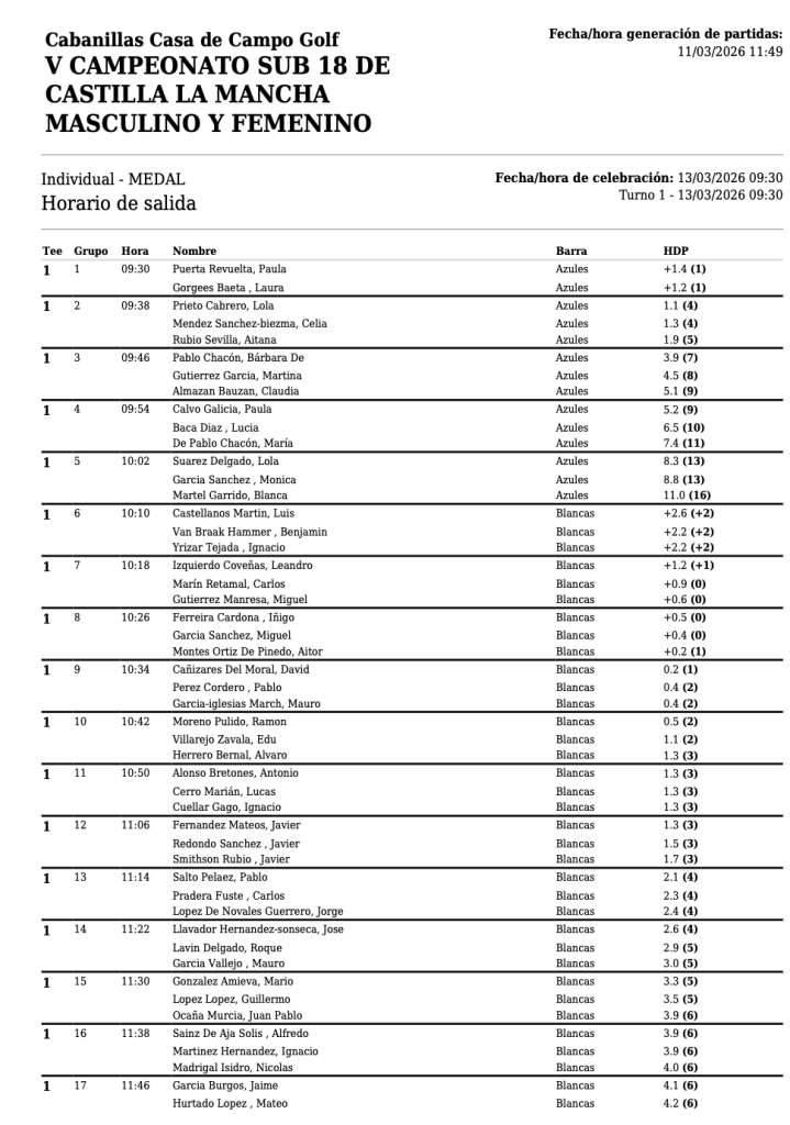 Asturianos en el V campeonato Sub-18 Castilla-La Mancha 2026 / CABANILLAS CASA DE CAMPO GOLF