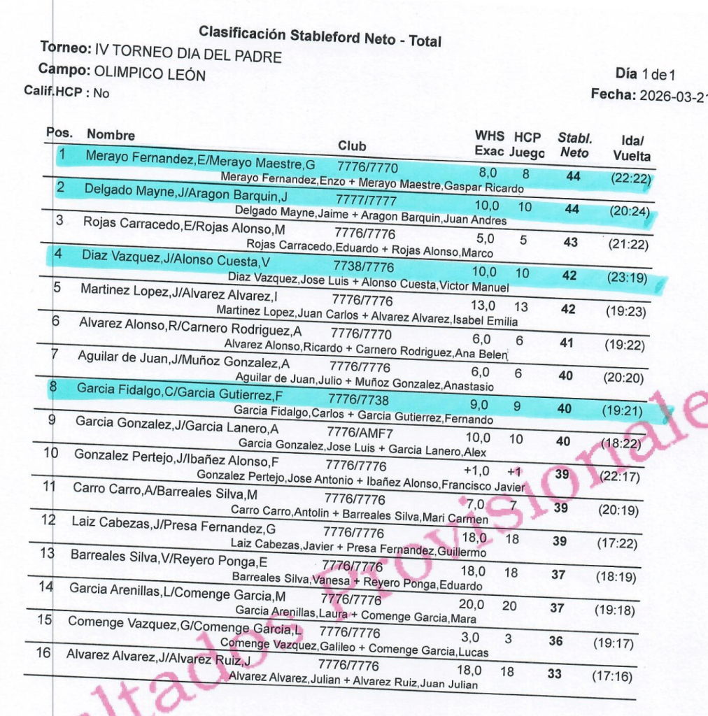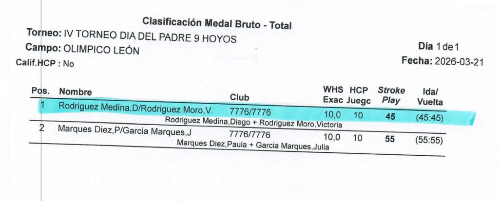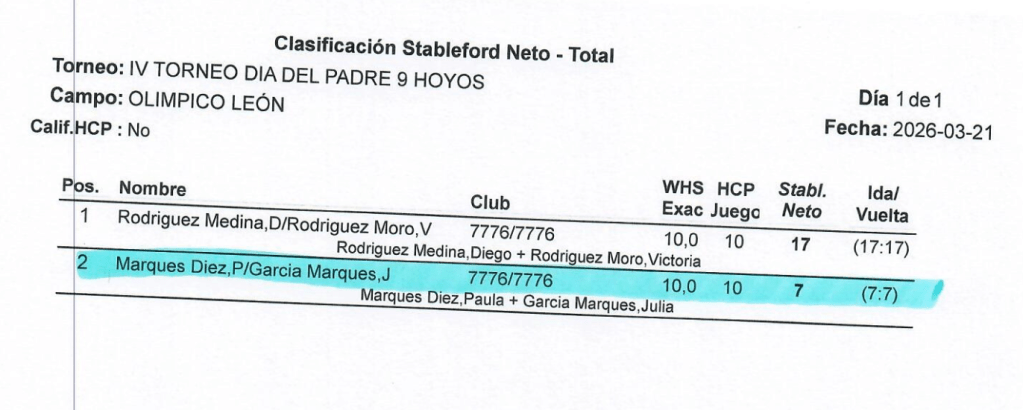 Resultados IV Torneo Dia del Padre / Olimpico de León por Golf por Asturias en 22 marzo, 2026 9 HOYOS STABLEFORD MEDAL 18 HOYOS MEDAL STABLEFORD Compártelo: Compartir en X (Se abre en una ventana nueva) X Comparte en Facebook (Se abre en una ventana nueva) Facebook Me gusta Cargando...