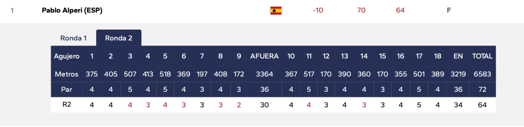 Pablo Alperi firma una tarjeta de 64 golpes, supera el corte y se situa en segunda posición de la clasificación, a tan solo 2 golpes del lider, el francés Alexandre Vandermoten en la nueva jornada del Villa Paradiso Alpes Open, cuarta prueba del Alps Tour 2026