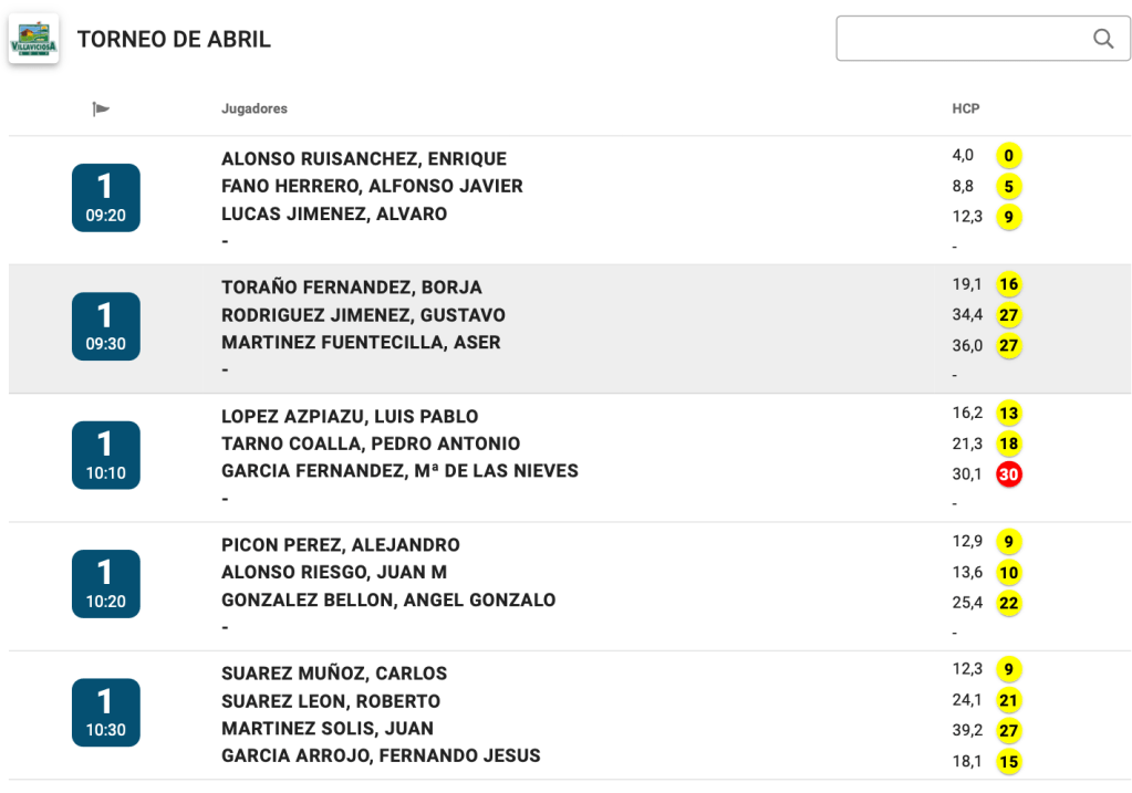 SALIDAS SABADO TORNEO PRIMAVERA 2026 / GOLF COURSE VILLAVICIOSA por Golf por Asturias en 17 abril, 2026 Compártelo: Compartir en X (Se abre en una ventana nueva) X Comparte en Facebook (Se abre en una ventana nueva) Facebook Me gusta Cargando...