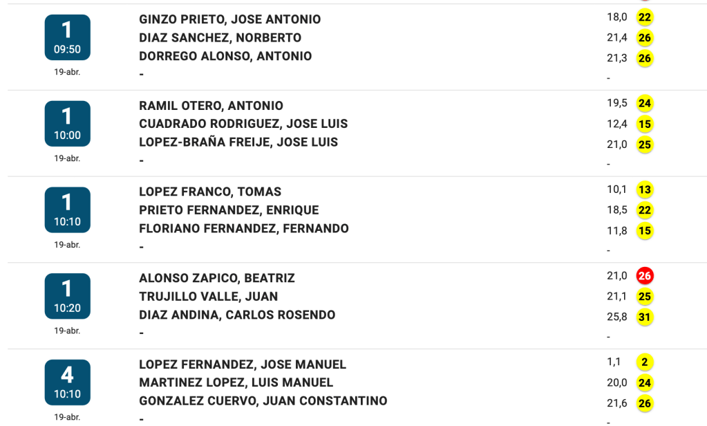 SALIDAS DOMINGO XIV LIGA OPEN 25-26 PRUEBA 8 / CIERRO GRANDE GOLF por Golf por Asturias en 18 abril, 2026 Compártelo: Compartir en X (Se abre en una ventana nueva) X Comparte en Facebook (Se abre en una ventana nueva) Facebook Me gusta Cargando...