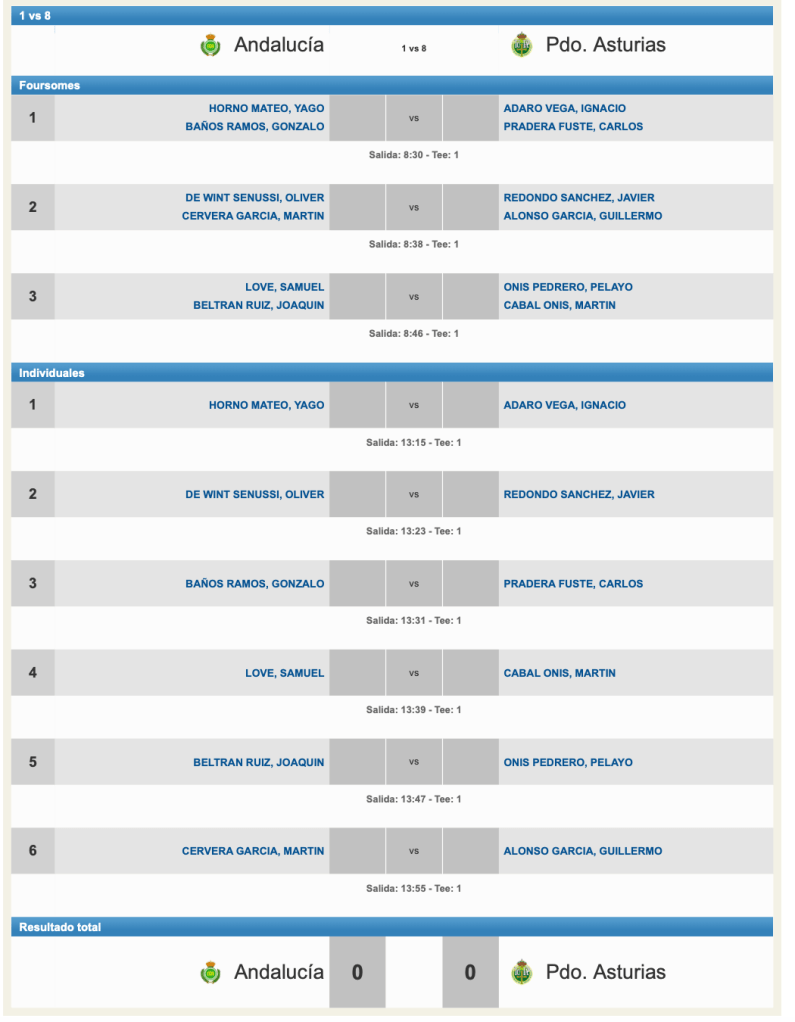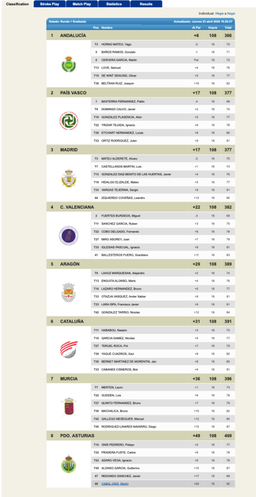 Resultados 1ª jornada Inter FF AA Sub 18 masculino 2026 / Rioja Alta Golf