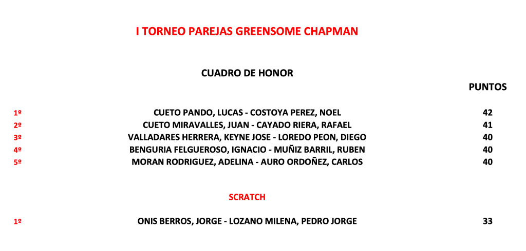 Resultados I torneo parejas Greensome chapman 2026 / Golf Course Villaviciosa por Golf por Asturias en 28 abril, 2026 Compártelo: Compartir en X (Se abre en una ventana nueva) X Comparte en Facebook (Se abre en una ventana nueva) Facebook Me gusta Cargando...