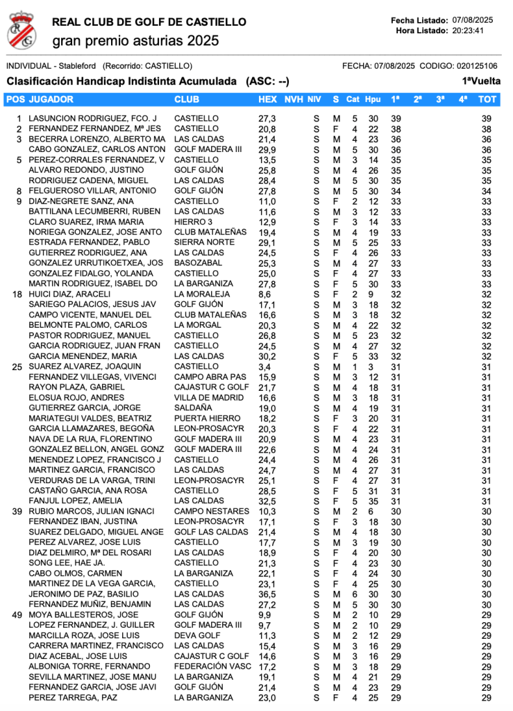 Resultados Gran Premio Asturias 2025 / AESGOLF – RCG Castiello