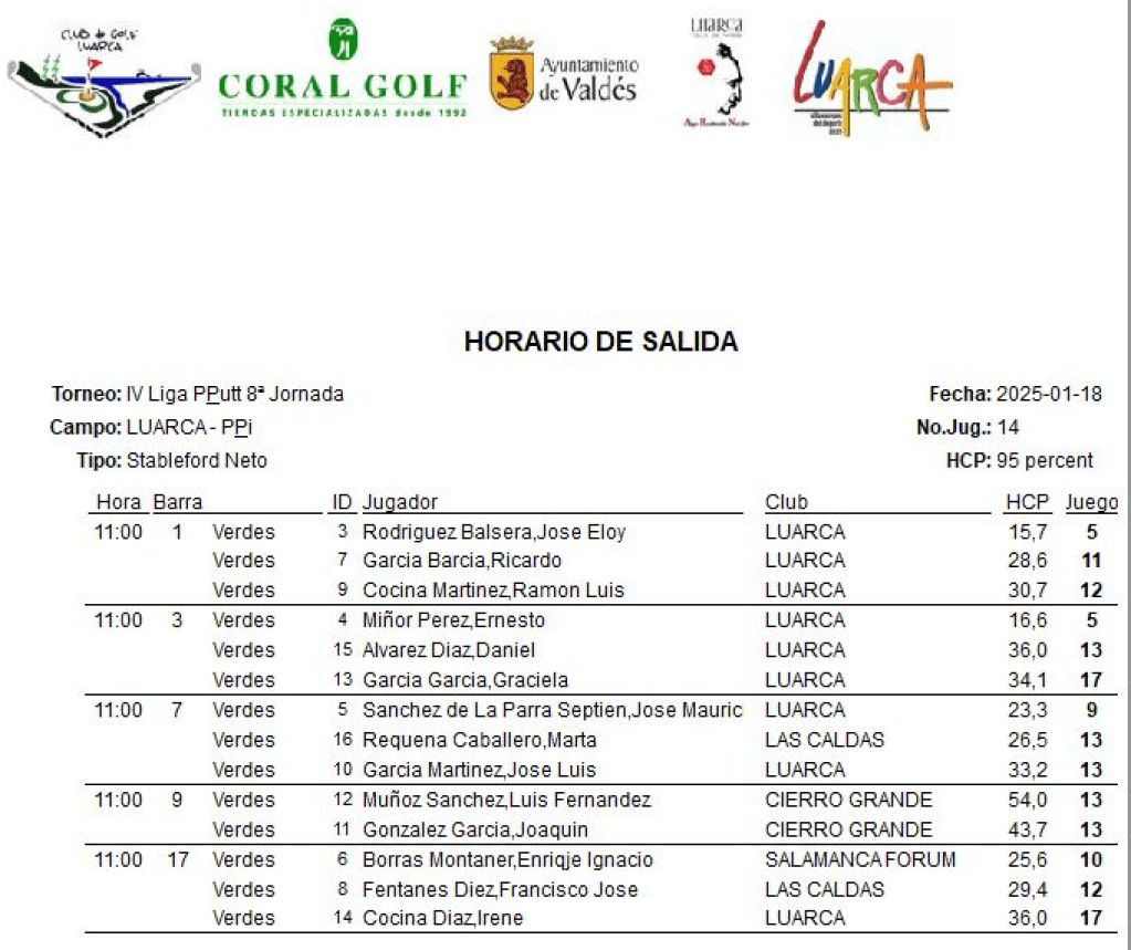 SALIDAS II PRUEBA LIGA SOCIAL 2025 / GOLF LA RASA DE BERBES
