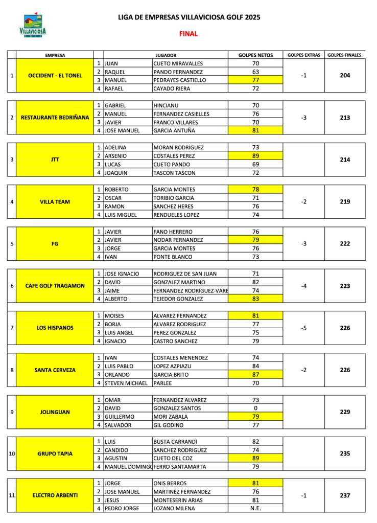 Fotos equipos Liga Empresas 2025 ( Final) / Villaviciosa Golf