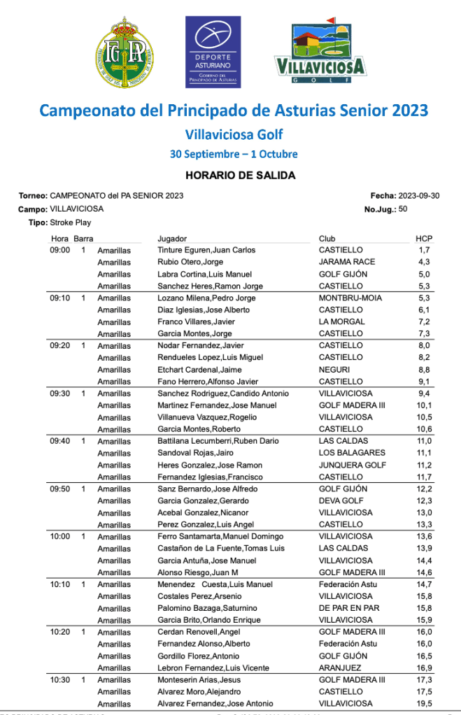 HORARIOS SALIDAS CAMPEONATO P.A. SENIOR 2023 / VILLAVICIOSA GOLF por Golf por Asturias en 30 septiembre, 2023 Deja un comentario
